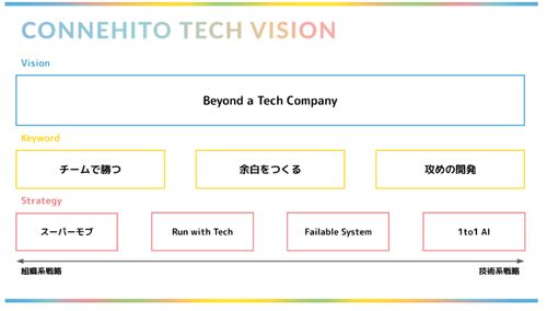 こんにちは。CTOの永井(shnagai)です。 今日は、約3年ぶりにアップデートしたConnehito Tech Visionについて、主に戦略面のアップデート内容とそこに込めた想いを交えつつ書いていきます。 tech-vision.connehito.com Connehito Tech Visionとは Connehito T…