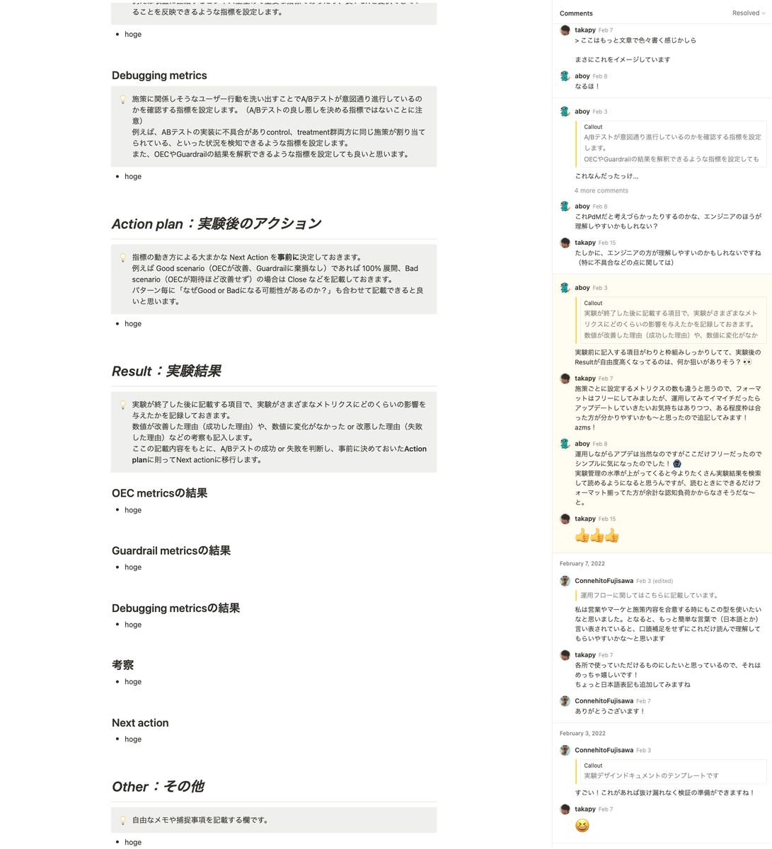 実験計画書を溜めておくことによるメリットを享受できるのはもう少し先になると思いますが、確実に未来へ資産を残していけていると思うので、形骸化しないように今後もブラッシュアップしていこうと思います!