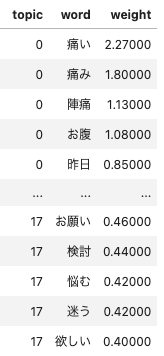 このようなDataFrameを取得することができ、トピックの理解に役立ちます。