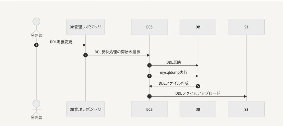弊社では前述の通り、 Ridgepole を使ってスキーマ定義を管理しているのでスキーマ定義の変更が発生したタイミングでDDLファイルを作成し、S3のバケットにアップロードする仕組みを作成しました。
