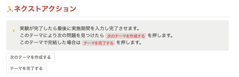 テーマのドキュメントに戻るとネクストアクションが設定されています。ここで「次のテーマを作成する」ボタンを押すと、次に繋がるテーマが作成されます。